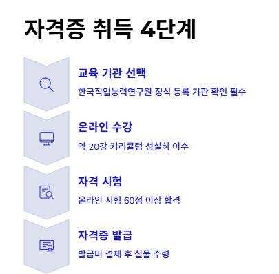- 교육 기관 선택: 한국직업능력연구원에 정식 등록된 병원 동행서비스 자격증 발급 기관인지 확인합니다.